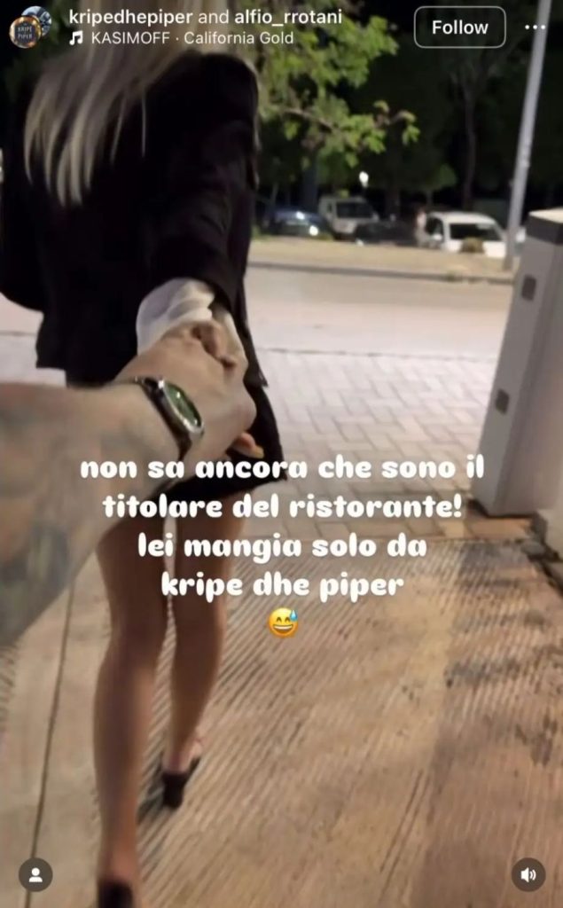 Alfio Rrotani, ka zgjedhur një mënyrë tejet të veçantë për të treguar për një lidhje të re dashurie. Në një video të publikuar në Instagram, ai shfaqet duke mbajtur për dore një vajzë misterioze, teksa ecin bashkë gjatë natës. Ajo që bie më shumë në sy është mbishkrimi me nota humori dhe romancë: