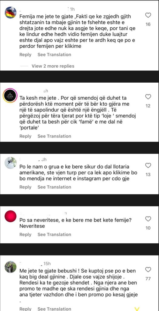 Pjesa më e madhe e komenteve nën postimin e Elionës nuk ishin as urime, as kritika personale, por reflektime të shoqërisë ndaj një fenomeni që po përhapet gjithnjë e më shumë: kthimi i bebeve në pjesë të pandashme të “content-it” ditor.