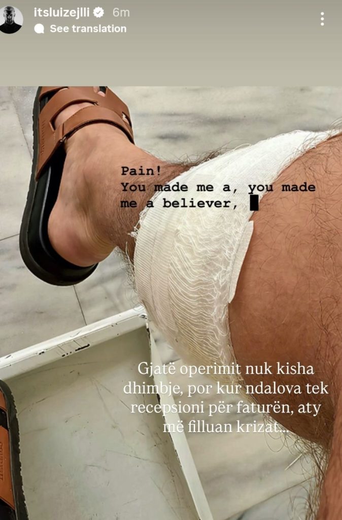 Këngëtari i njohur Luiz Ejlli ka ndarë me ndjekësit një moment pas një ndërhyrjeje mjekësore që ka kryer në këmbë.