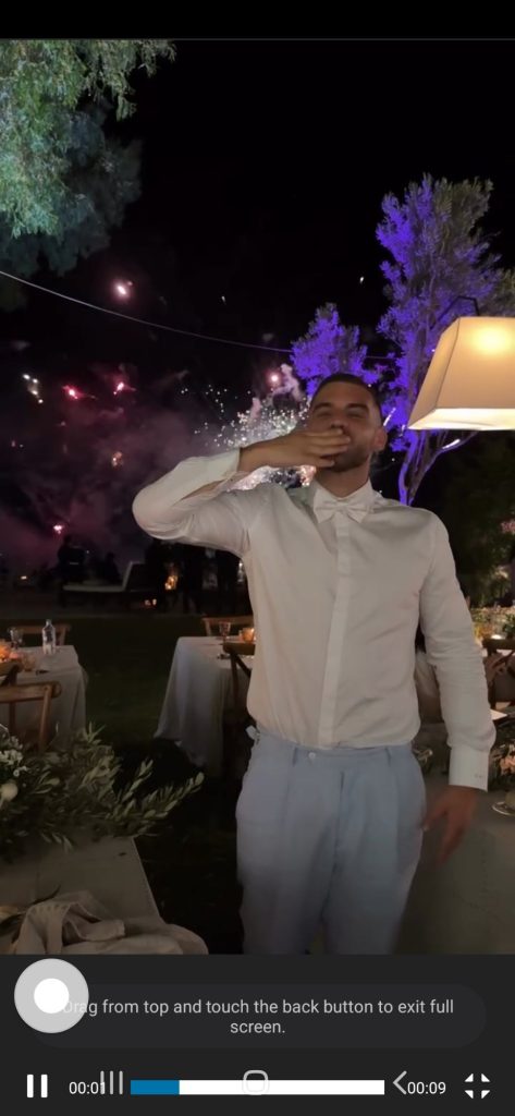 Në një event të përbashkët ku kanë marrë pjesë, Sara e ka xhiruar Erikun teksa i dërgon puthje.