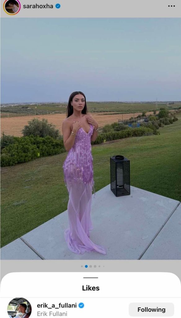 Së fundmi Sara ka publikuar disa imazhe ku shfaqet e veshur me një fustan lejla dhe e kuruar deri në detajin më të vogël, një paraqitje që ka tërhequr edhe vëmendjen e Erik Fullanit, i cili ka reaguar me një pëlqim në postim.