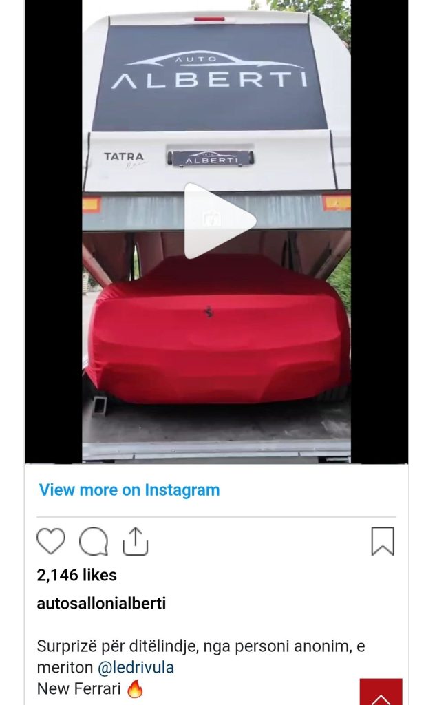 Por ajo që e bëri postimin edhe më misterioz, ishte një detaj që Ledri zgjodhi të mos e sqarojë: dhurata mbetet anonime. Në mbishkrimin e videos, la të kuptohet se Ferrari nuk është blerë nga vetë ai, por është një dhuratë për ditëlindje.