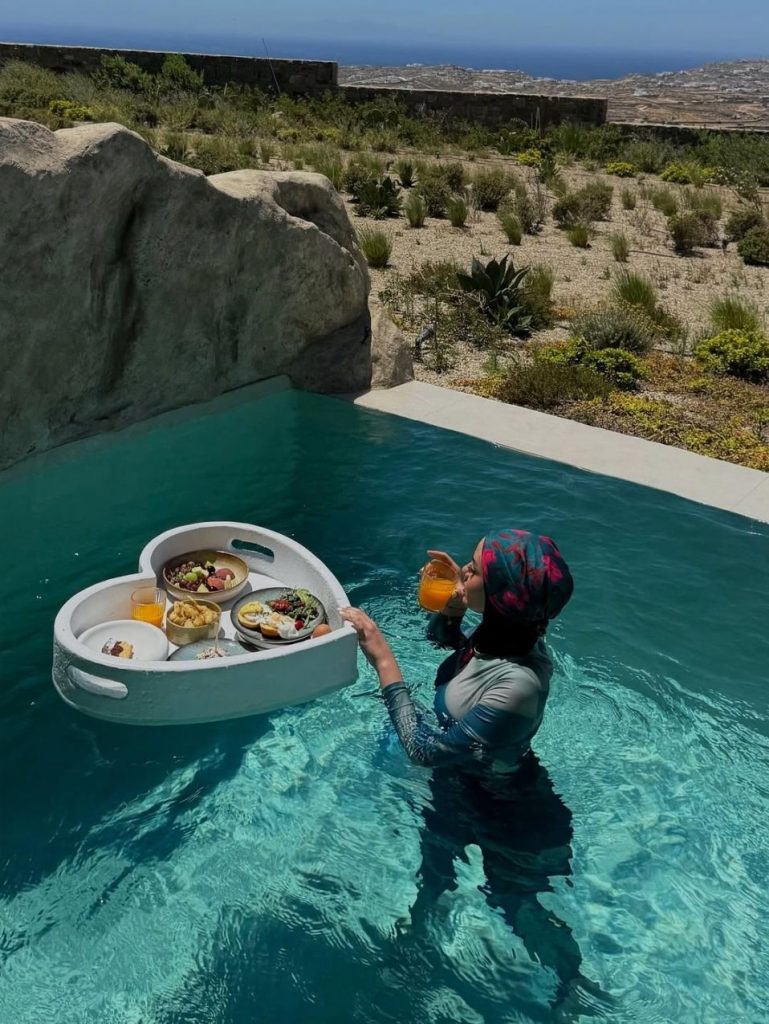 Nga atje, Hati ka ndarë me ndjekësit pamje të ndryshme, duke treguar se po i shijon pushimet në maksimum, mes relaksit dhe atmosferës bregdetare.