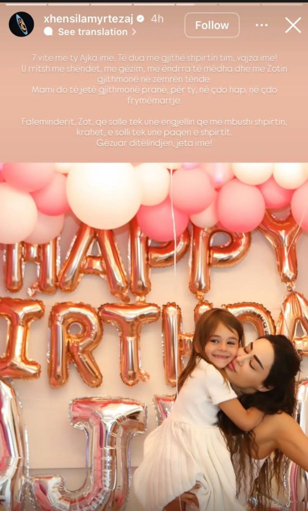 Të dy prindërit kanë ndarë në rrjete sociale foto nga ditëlindja e Ajkës, por në asnjërën prej tyre nuk shfaqen bashkë. Xhensila dhe Besi kanë zgjedhur që ta festojnë këtë ditë veçmas, duke e ndarë gëzimin me familjarë dhe miq të afërt, secili në rrethin e vet.