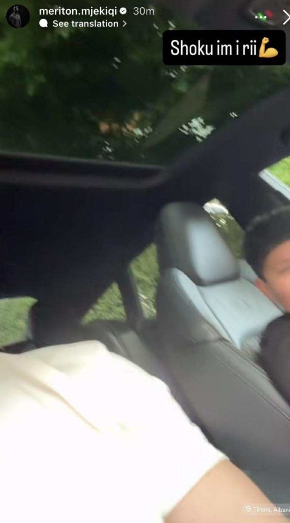 Pas këtyre spekulimeve, Meritoni ka reaguar përmes një postimi në llogarinë e tij në Instagram, ku shihet në veturë së bashku me një fëmijë, të cilin e quan “shok”