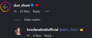 Ka qenë hiç më pak se reperi Don Xhon ai i cili i ka lënë një zemër në koment Loredanës.