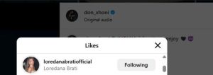 Por veprimi i fundit i Loredanës ka tërhequr vëmendjen e ndjekësve në rrjet. Ajo ka pëlqyer disa prej postimeve të fundit të reperit, gjë që ka nxitur reagime dhe spekulime të shumta për një afrim mes tyre.