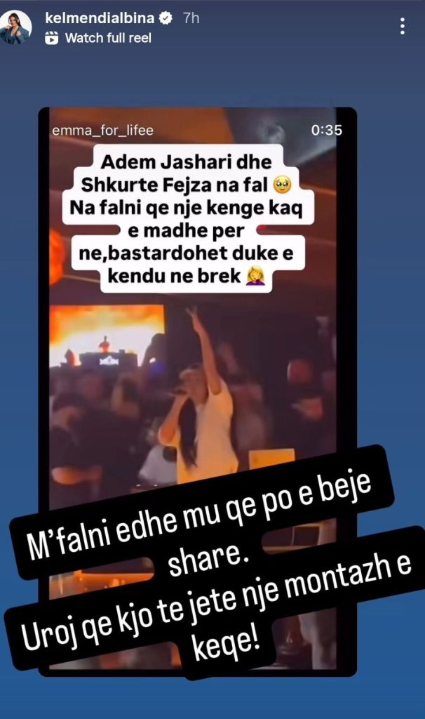 Albina ka ripostuar videon, duke shprehur zhgënjimin e saj të thellë: