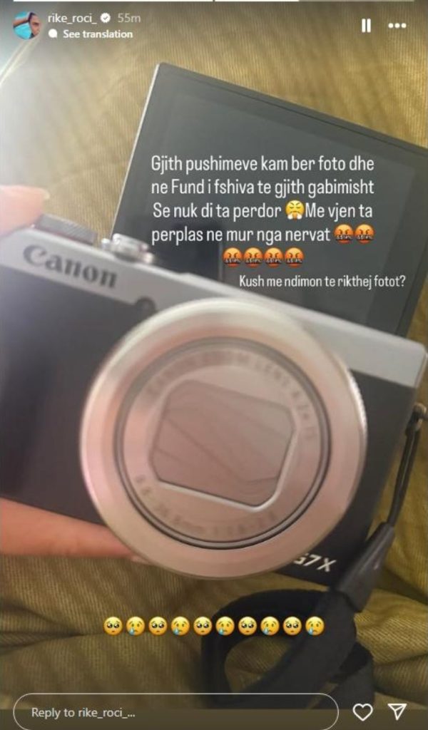 Në Instastory ndau një shkrim ku shkroi se gabimisht ka fshirë të gjitha fotografitë në “Canon”.