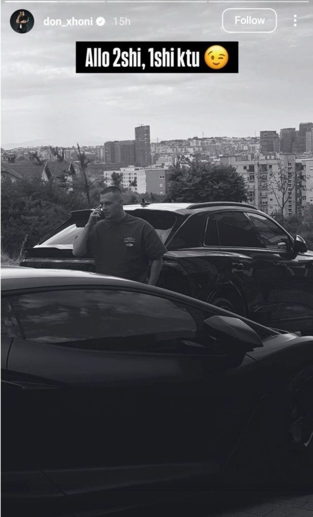 Gjithçka nisi me një Instastory të Don Xhonit, ku ai postoi një foto me veturë luksoze dhe mbishkrimin:
