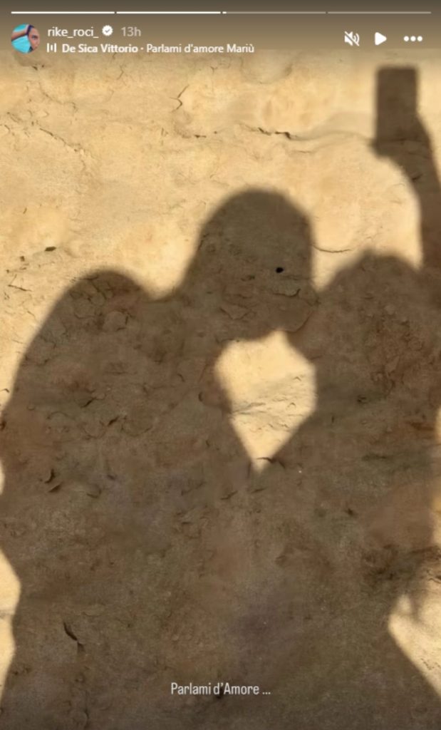 Në imazhin e publikuar, shihet në rërën e plazhit hija e Rike Roçit duke u puthur në buzë me të dashurin.