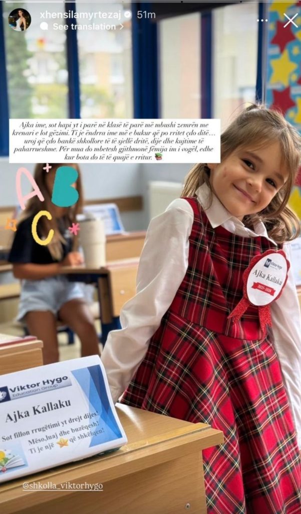 “Suksese Ajka ime në të parën ditë të shkollës. Lulja e bukur e gjakut tim”.