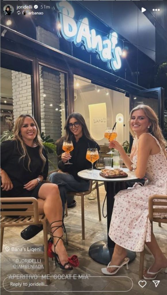 Përmes një foto të publikuar në Insta story, Arbana ka bërë të ditur se ka dalur së bashku më Jorin dhe Beniadën.