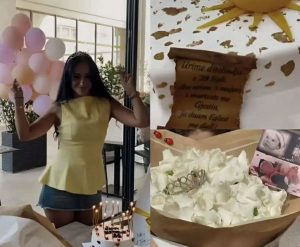 Ata i kanë dërguar një ëmbëlsirë dhe një buqetë me lule të bardha, të shoqëruara me një kartolinë ku shkruhej “Urime ditëlindjen e 28-të Egli, dhe urime 5-mujorin e martesës me Gjestin. Ju duam – Eglest.”
