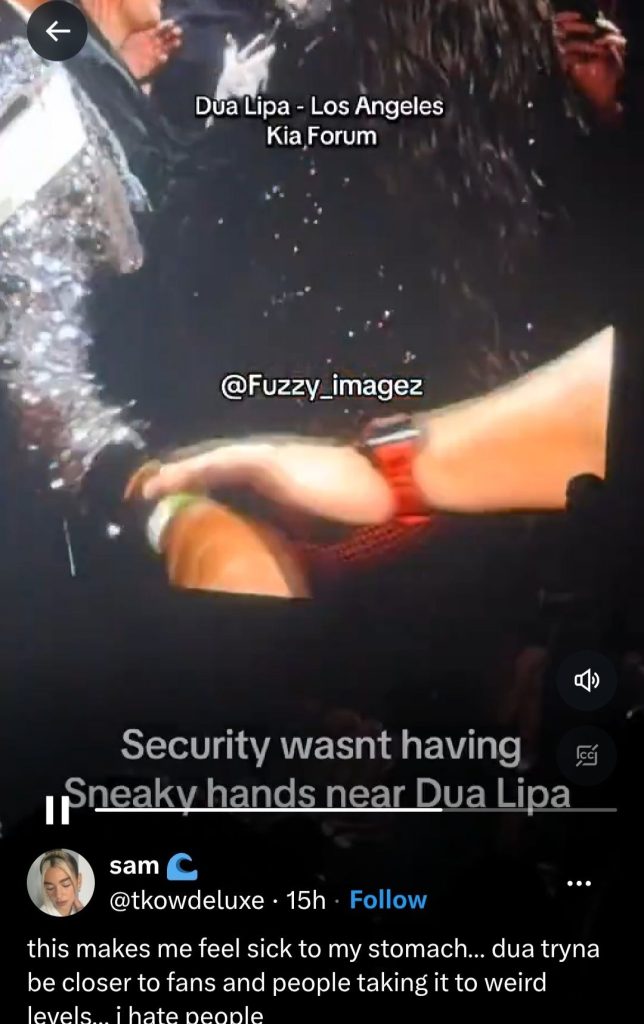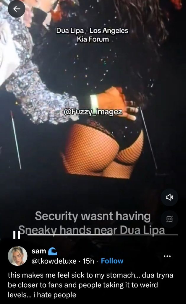 Një video nga performanca e yllit botëror të muzikës pop, Dua Lipa, në Los Angeles, ka tronditur publikun dhe ka ndezur reagime të forta në rrjetet sociale.