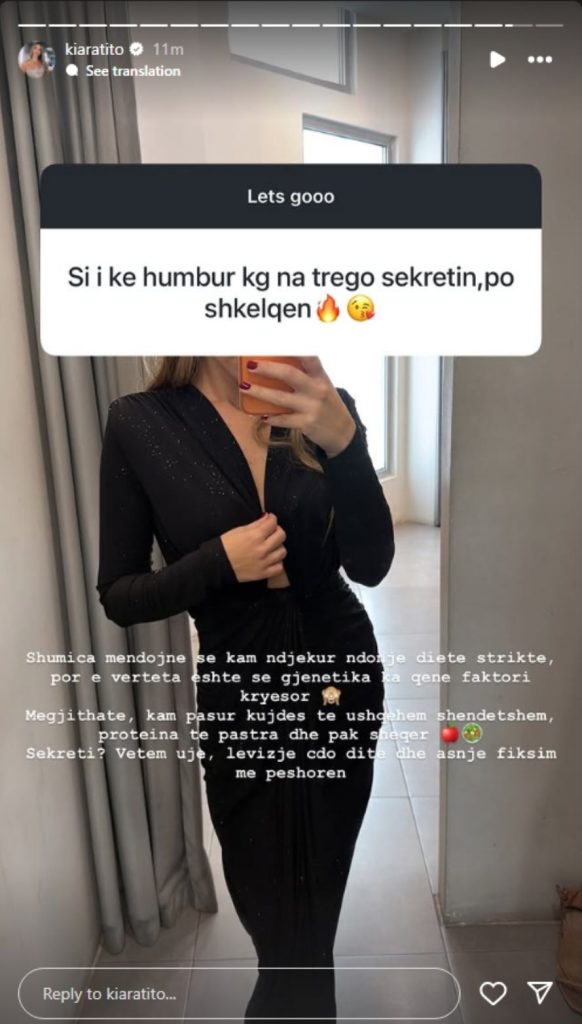 Moderatorja shqiptare Kiara Tito, ka hapur një pyetësor në llogarinë e saj në “Instastory”.