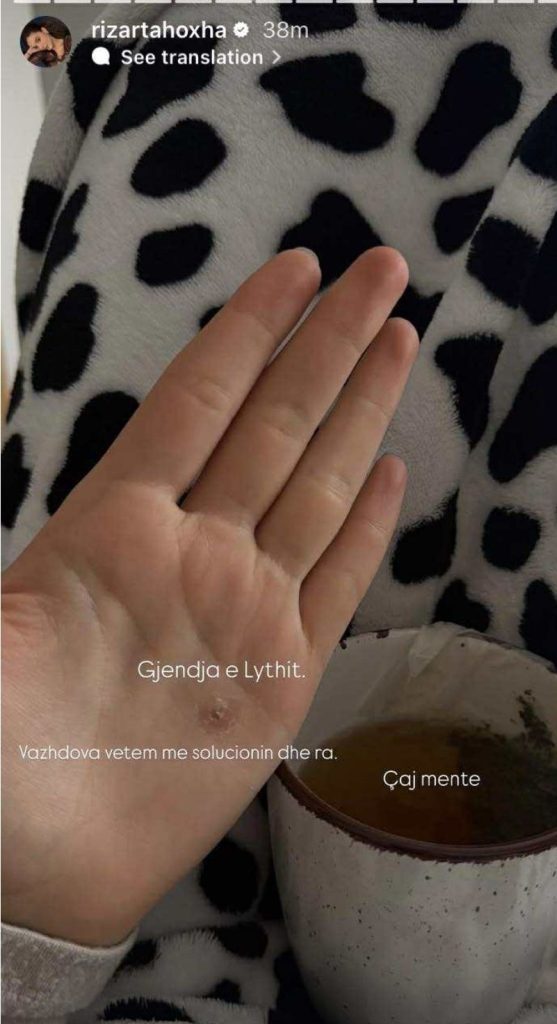 Përmes një postimi në rrjete sociale, ajo ka treguar se në dorë i është shfaqur një lyth, për të cilin aktualisht po merr trajtim mjekësor.