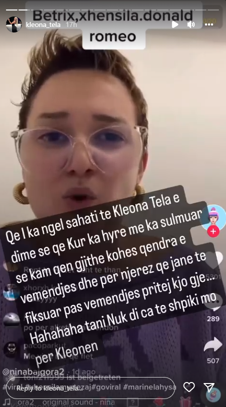 Në një video që Kleona ka publikuar në Instastory, Marinela dëgjohet duke bërë akuza të rënda ndaj saj dhe opionionstit: