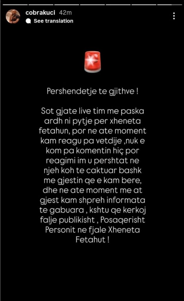 Gjatë transmetimit me ndjekësit, një komentues e pyeti atë për ish-banoren e “Big Brother VIP Kosova”, Xheneta Fetahun, duke i shkruar që “ta prekë veshin nëse ka pasur diçka me të”. Pak sekonda më pas, Kuqi u pa duke bërë pikërisht atë gjest – veprim që u interpretua si një lloj konfirmimi për një raport mes tyre.