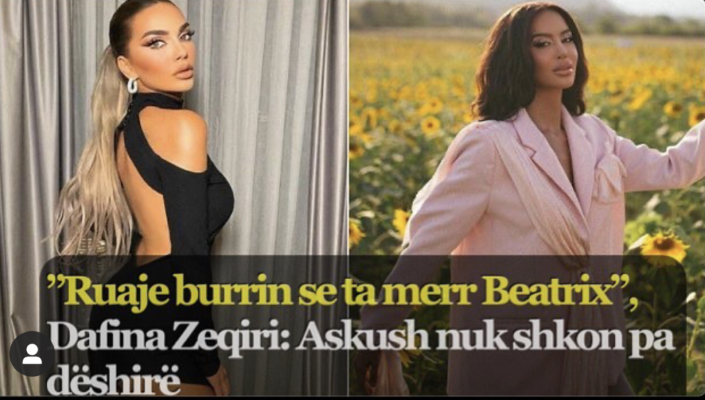 Ndjekësit i kanë shkruar Dafinës që të ketë kujdes sepse Beatrix mund “t’i marrë burrin”. Por Dafina Zeqiri është përgjigjur e revoltuar, duke mbështetur kështu Beatrixën.