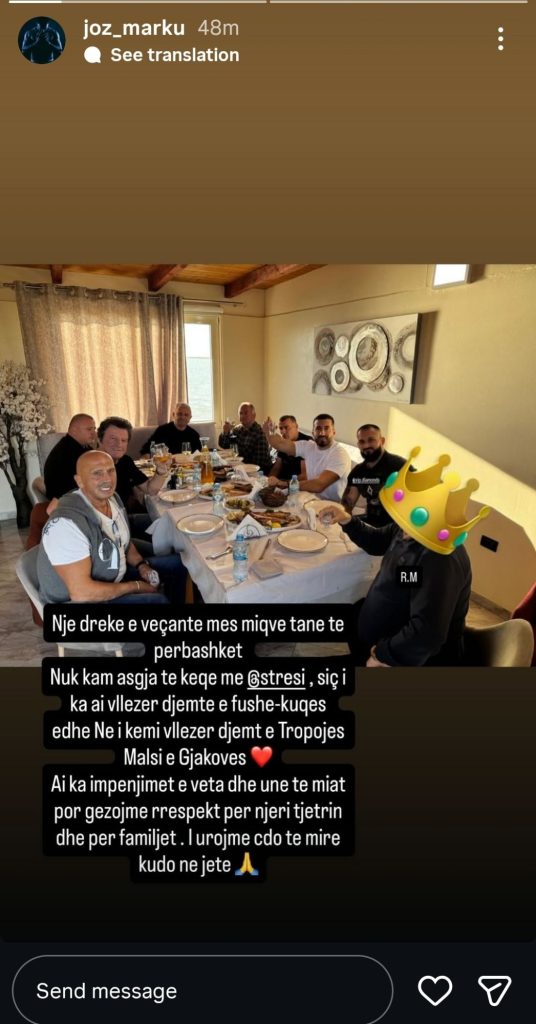 Së fundmi, Jozi ka publikuar në Instagram disa foto nga një drekë ku ai shfaqet së bashku me Sali Lushajn, babain e Stresit, gjë që menjëherë ndezi aludime për një paqe të mundshme mes palëve.
