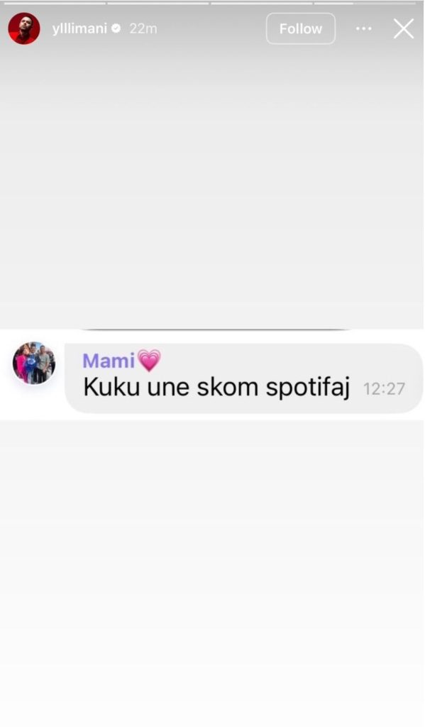 Yll Limani ndau së fundmi në InstaStory-n e tij një mesazh shumë të veçantë nga nëna e tij. Ajo me humor dhe sinqeritet ka treguar “problemin” e saj rreth këngës së re, duke shkruar: