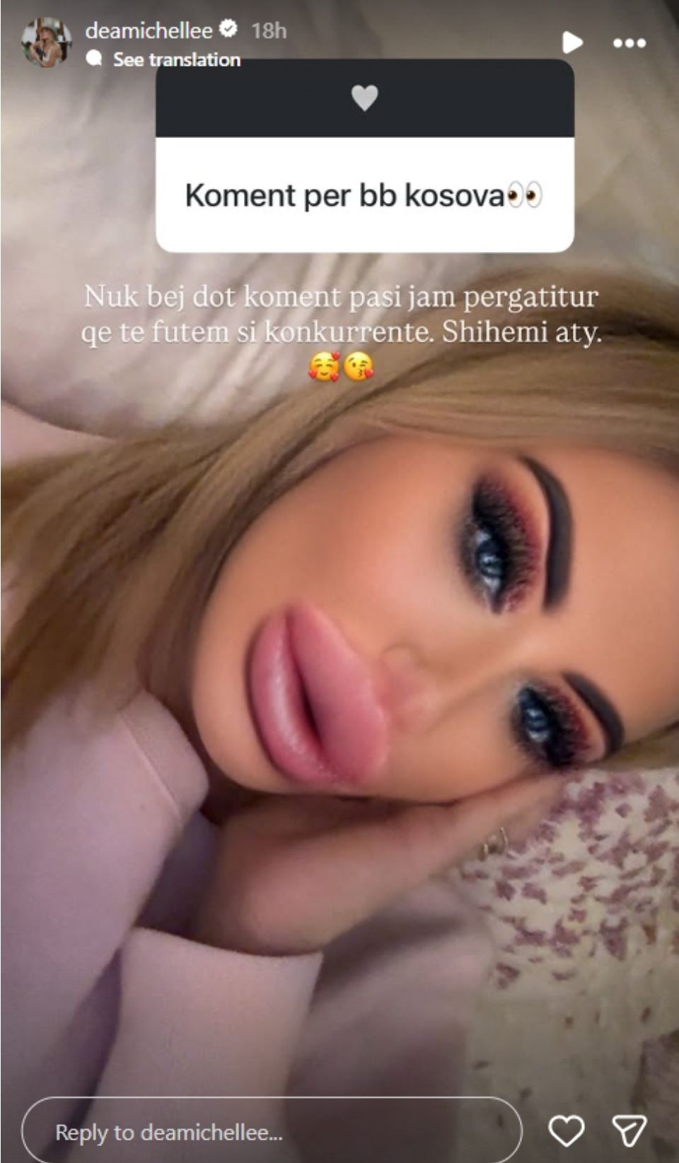 ”Nuk bej dot koment pasi jam pergaditur qe te futem si konkurrente. Shihemi aty”, ka shkruar ajo.