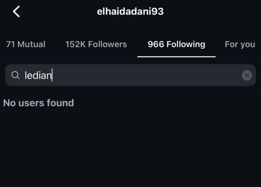 Në epokën digjitale, një klikim shpesh interpretohet si mesazh. Këngëtarja e ka hequr Ledianin nga lista e personave që ndjek, ndërsa balerini vazhdon ta ndjekë Elhaidën. Një asimetri që ka shtuar spekulimet, sidomos pasi Lediani ka zgjedhur të vendosë në profil një foto të tij nga shumë vite më parë, një zgjedhje që disa e lexojnë si simbolike.