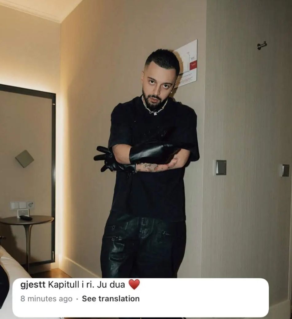 Në mes të këtij momenti të artë në karrierë, Gjesti ka rikthyer vëmendjen edhe në rrjetet sociale me një postim të ri në Instagram. Në fotografinë e publikuar, artisti shfaqet me një stil të veçantë dhe të errët, i veshur me të zeza dhe me dorashka lëkure, duke reflektuar një imazh më të pjekur dhe më të vendosur artistikisht. Megjithatë, ajo që tërhoqi më shumë interes ishte mbishkrimi shoqërues i fotos: “Kapitull i ri. Ju dua ❤️”.