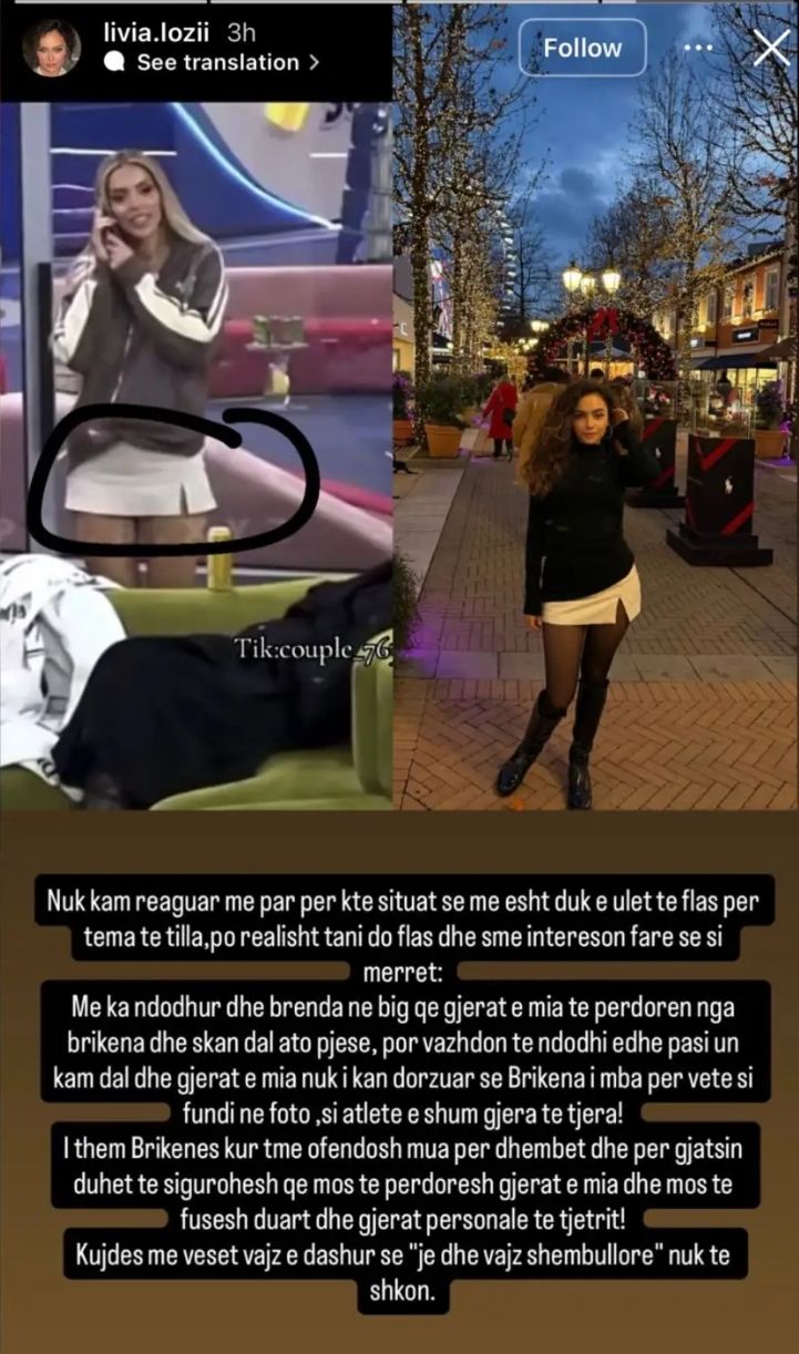 “Gjërat e mia janë përdorur nga Brikena… dhe vazhdon të ndodhë edhe pasi unë kam dalë. Nuk m’i kanë dorëzuar dhe ajo i mban për vete,” – shkruan Livia, duke shtuar se disa prej tyre shihen edhe në fotot e publikuara së fundmi.