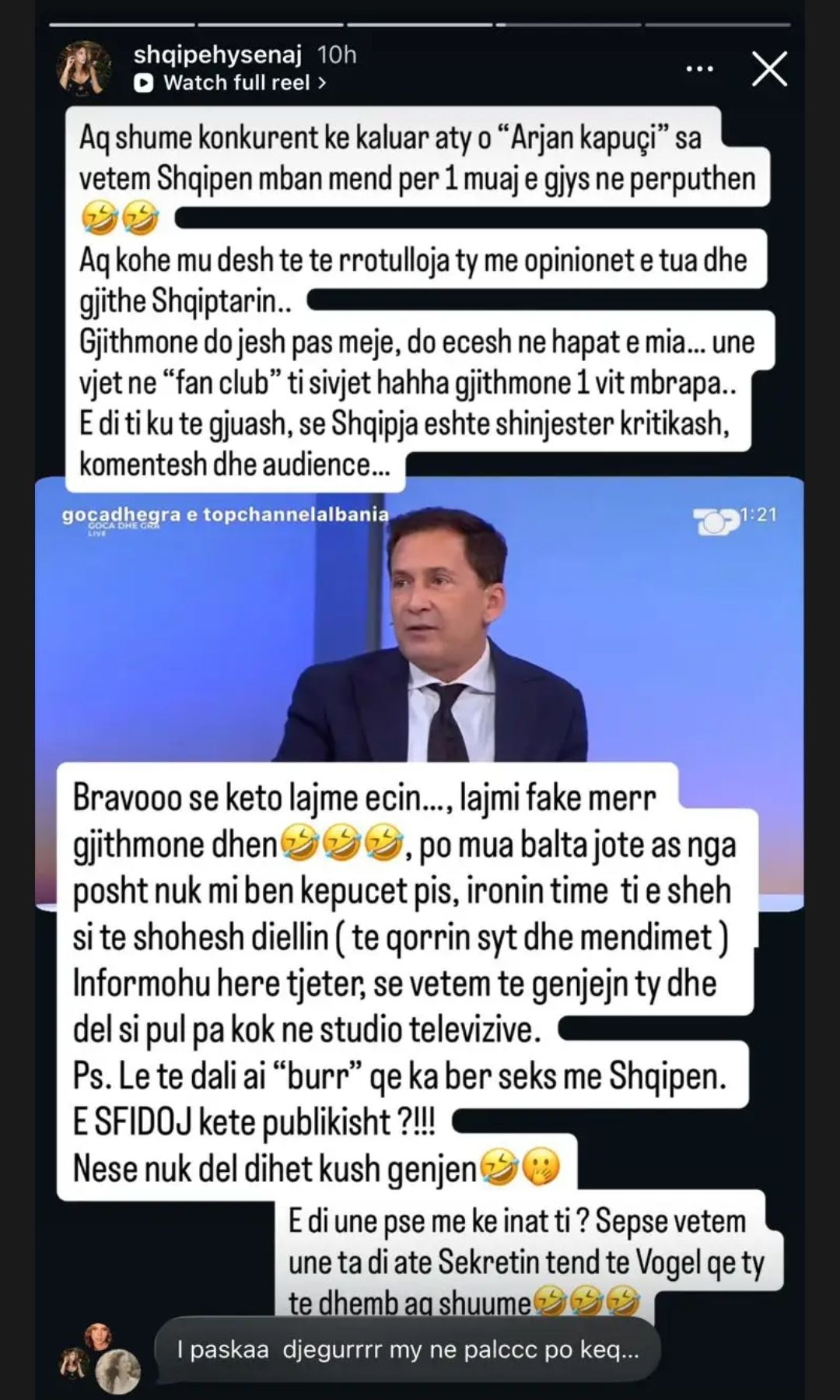 Në përmbyllje të reagimit, Shqipja la të kuptohet se mes saj dhe Konomit ekziston një histori e pathënë, duke shtuar më shumë mister rreth këtij debati publik.