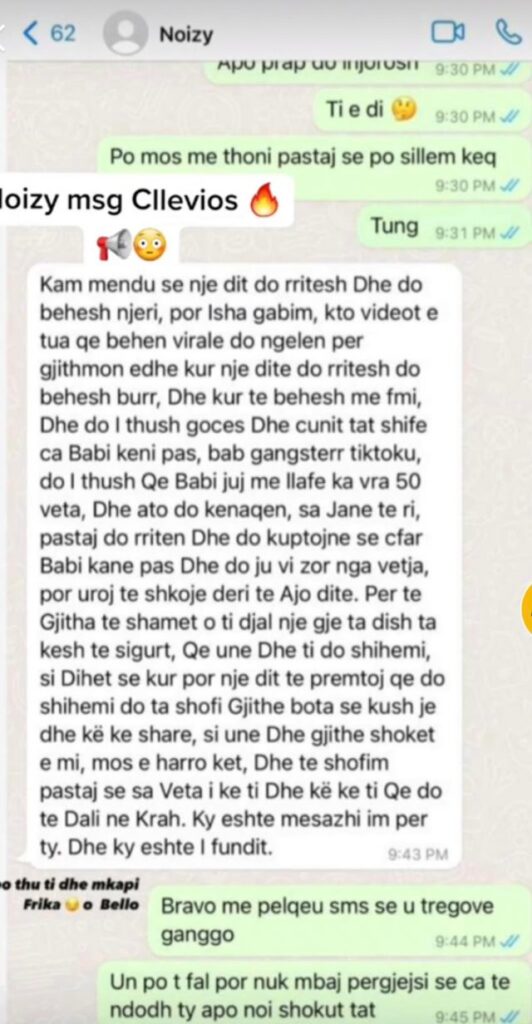 Duket se mes tyre ka pasur edhe një sherr verbal para disa ditëve, madje ata kishin shkëmbyer edhe mesazhe. Pas kësaj, Noizy ka postuar një videon në TikTok, të cilën e ka fshirë pas disa minutash. Para një jave Cllevio postoi një mesazh të Noizyt, ku ai i thoshte se është gabim që e shan në rrjetet sociale.