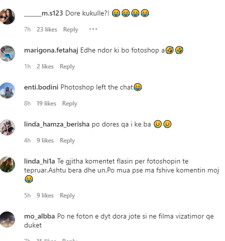 “Të gjitha komentet flasin për fotoshopin e tepruar.Ashtu bëra dhe un.Po mua pse ma fshive komentin moj”- komëntoi ndjekësja.
