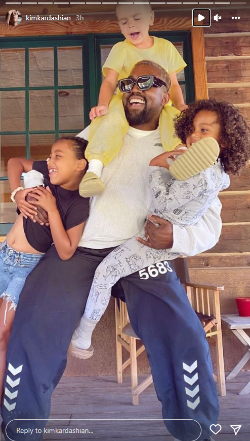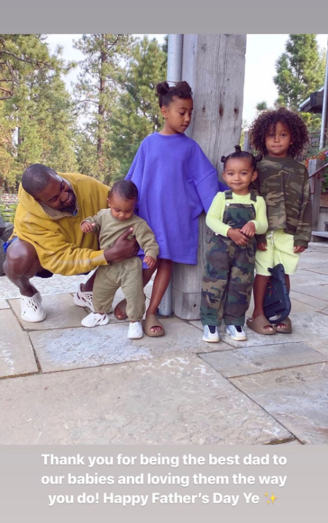 Mesazhi u shoqërua me një foto të reperit, 45 vjeç, duke buzëqeshur dhe duke pozuar me fëmijët e tyre: North, 9 vjeç, Saint, 6 vjeç, Chicago, 4 vjeç, dhe Psalm, 3 vjeç.
