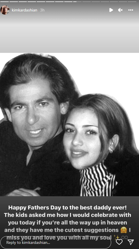“Fëmijët më pyetën se si do të festoja me ty sot nëse je në parajsë”, ka shkruar Kim një nga fotot e saj me Robertin, i cili vdiq në vitin 2003 në moshën 59-vjeçare. “Ata më dhanë sugjerimet më të lezetshme. Më mungon, të dua me gjithë shpirt.”