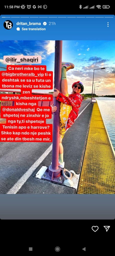 Por, Tan Bramës nuk i del e keqja me kaq. Ai ka postuar një tjetër Instastory ku ndër të tjera i drejtohet Ilirit duke i thënë që në Big Brother e ka shpëtuar Donaldi jo ai.