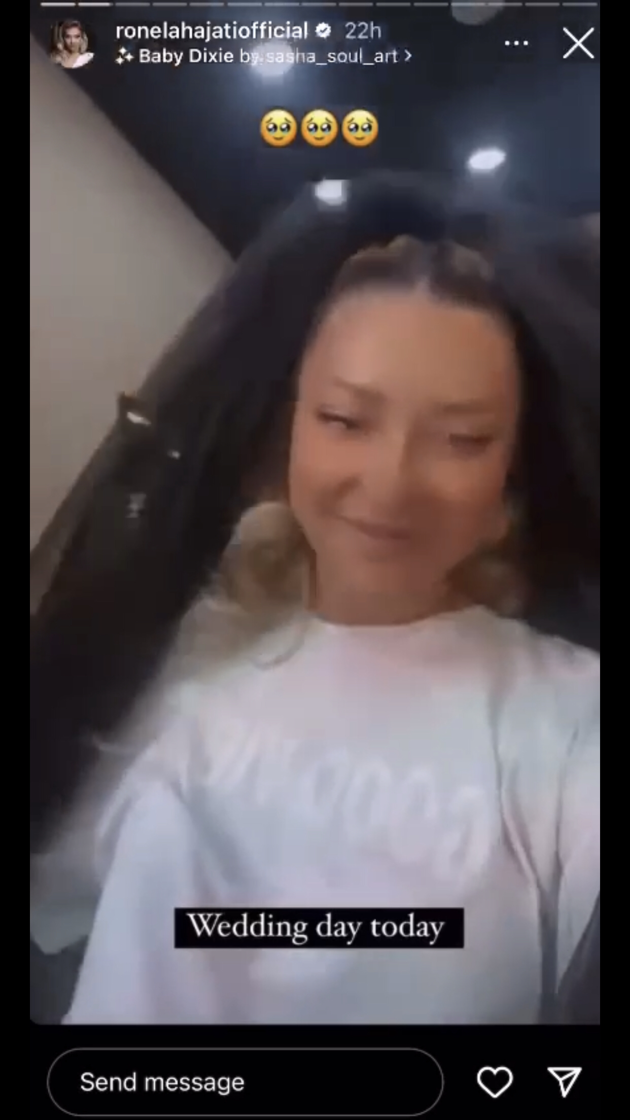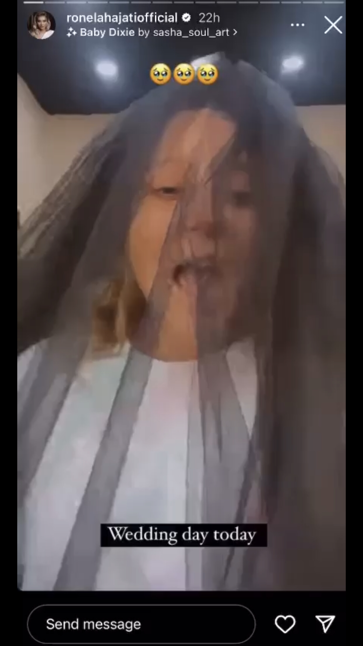 “Dasëm sot, do martohem”,-dëgjohet të thotë Ronela në video.