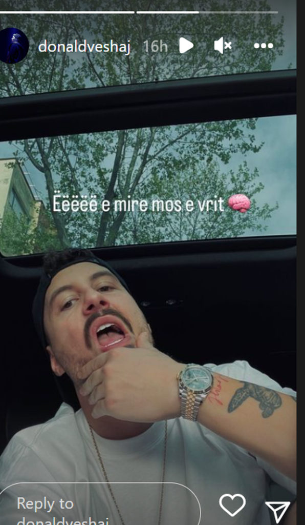 Donaldi ka vendosur të reagojë tre ditë më vonë duke postuar në Instastory një foto e duke shkruar: “Ëëëëë e mirë mos e vrit trurin”.