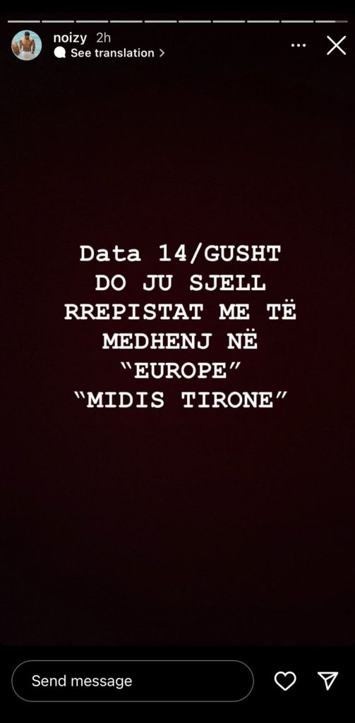 Gjatë ditës së sotme, reperi me anë të një Instastory ka rikujtuar edhe njëherë të ftuarit e tij në koncertin që do të mbahet më 14 gusht, në Tiranë. Noizy lajmëroi se do të sjellë reperët më të mëdhenj në Evropë për të performuar krah tij.