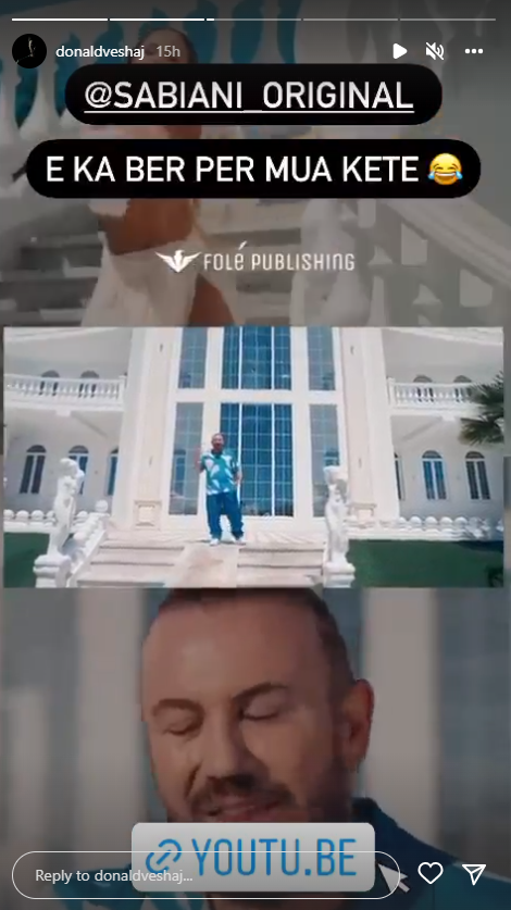 Pas Monika Lubonjës së fundmi edhe Donald Veshaj ka “thumbuar” Ilir Shaqirin. Ai ka postuar në instastoryn këngën më të re të Sabianit ku shkruan: “E ka bërë për mua këtë.” Kjo është shprehja “legjendare” e fituesit të Big Brother Vip, e cila është bërë virale kudo.