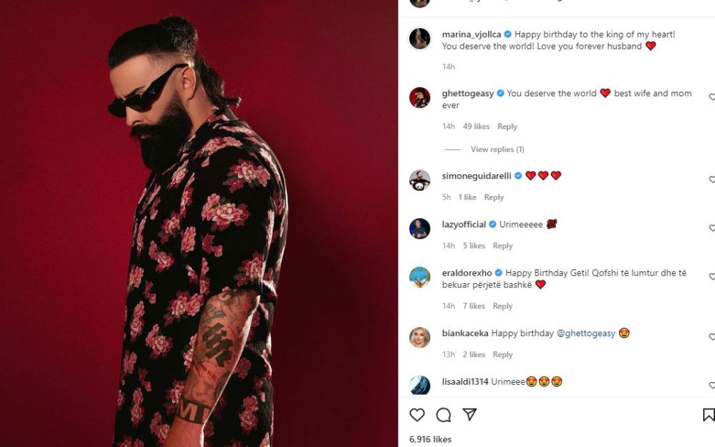 Gjithashtu nuk kanë munguar as urimet e shumta nga miq dhe kolegë të artistit. Marina dhe Getoari janë një ndër çiftet më të dashura në showbizin shqiptar.