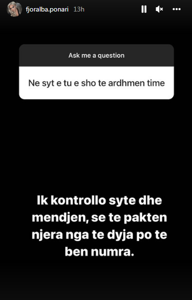 “Ik kontrolli sytë dhe mendjen, se të paktën njëra nga të dyja po të bën numra”, i kthehet Ponari në “Instastory”.
