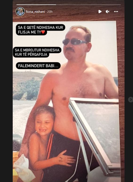 Në “Instagram”, ajo ka ndarë një foto nga fëmijëria, kur babë e bijë shfaqen me pushime, ndërsa Fiona, shumë e vogël, e përqafonte të atin e gëzuar.