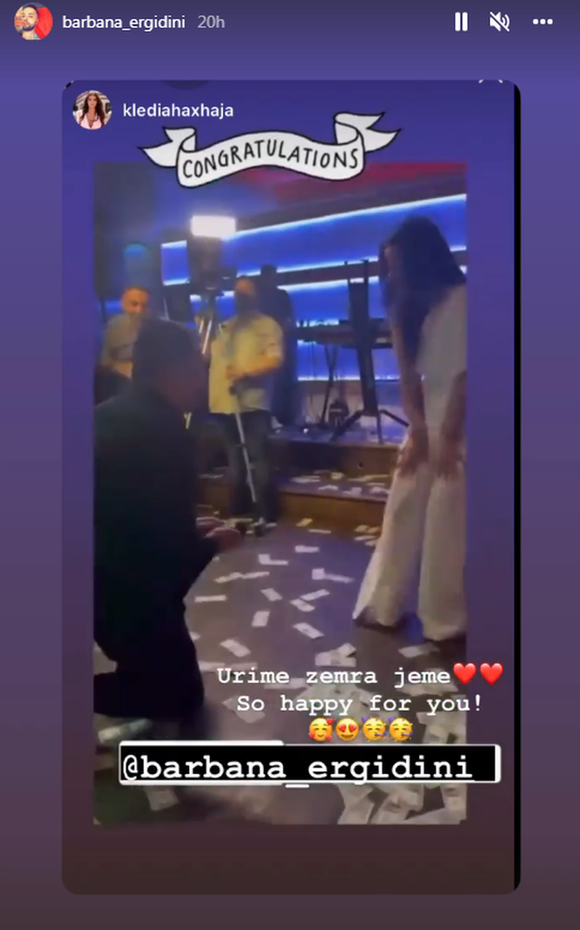 Këngëtarja e njohur, Barbana Dini ka marrë propozim për martesë nga partneri i saj. Mbrëmë Barbana ka festuar ditëlindjen dhe nga festa miqtë kanë publikuar një video ku partneri i saj ulet në gjunjë dhe i propozon.