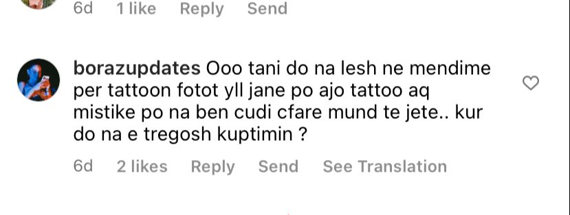 Ndjekësit e Borës nuk kanë nguarruar ta pyesin moderatoren për tatuazhin e ri në seksionin e komenteve, por nuk kanë marrë përgjigje. Disa e lidhin tatuazhin me Donaldin, duke e konsideruar si dedikim, ndërsa të tjerë janë kuriozë për kuptimin e vërtetë të tij.