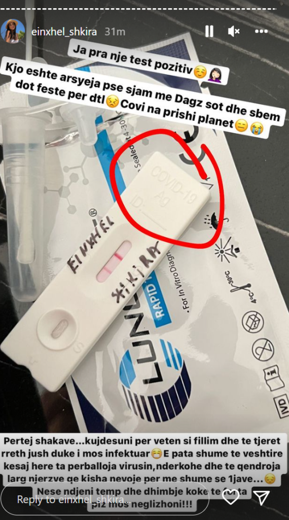 Einxhel ka zbuluar në një InstaStory se në fakt ka rezultuar pozitive në një test, por jo në atë që prisnin fansat.