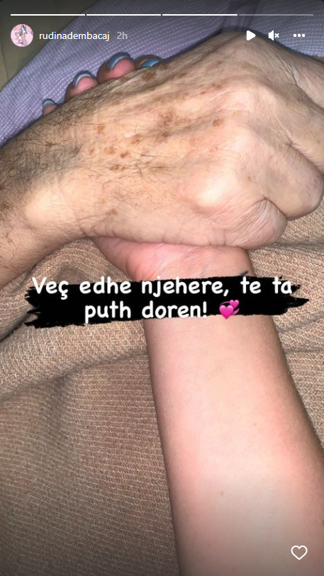 Më tej ajo ka publikuar një tjetër foto ku shfaqet duke shtrënguar duart me të atin e saj, ndërsa në mbishkrimin e fotos thuhet: “Veç edhe një herë, të ta puth dorën”.