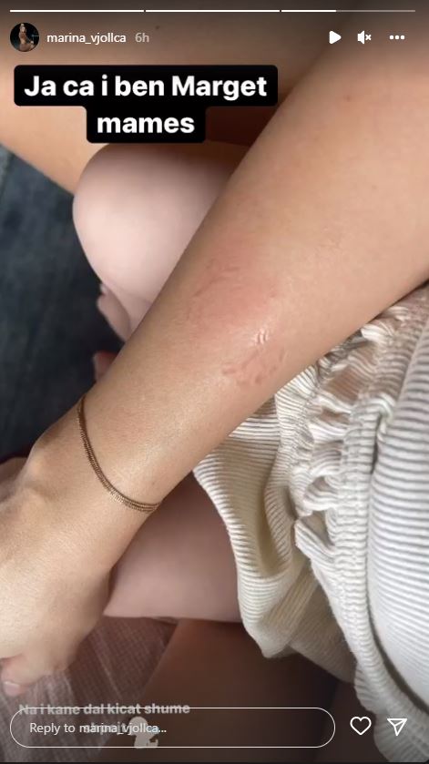 Moderatorja duket se po e shijon në maksimum mëmësinë dhe kohën që kalon me vajzën e saj. Mirëpo, përpos lumturisë, së fundmi Marina është përballur edhe me “sfidat” e para të të qënurit nënë. Vogëlushes Marget po i dalin dhëmbët e parë, dhe pasojat po i vuan mami Marina. Moderatorja ndau me ndjekësit e saj një Instastory ku tregon dorën e kafshuar nga vajza.